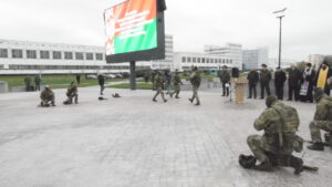 С приветственным словом и пожеланием успешной службы к призывникам  и присутствующим на митинге  обратились:  Вячеслав Дурнов заместитель председателя  Витебского областного исполнительного комитета,  военный комиссар полковник  Сергей Кунаховец, председатели Витебской городской организации «Братство» ОО «БСВВА» Валерий Ананченко, председатель областного союза офицеров, представители общественности, родители и служителей церкви.